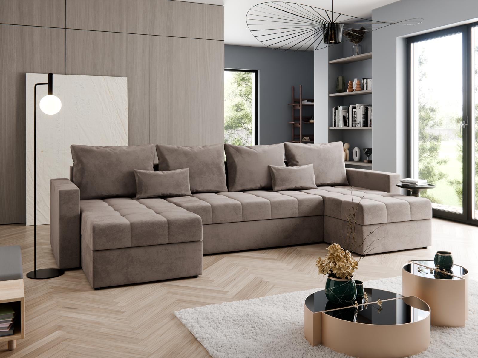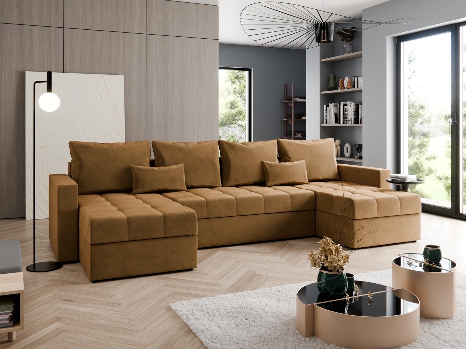Poznaj narożnik Verano – nowoczesny mebel wypoczynkowy w kształcie litery U, który zachwyca nie tylko komfortem, ale i wyjątkowym designem. Tapicerowany miękką, aksamitną tkaniną welurową i ozdobiony dekoracyjnymi pikami, wnosi do wnętrza nutę luksusu i przytulności.